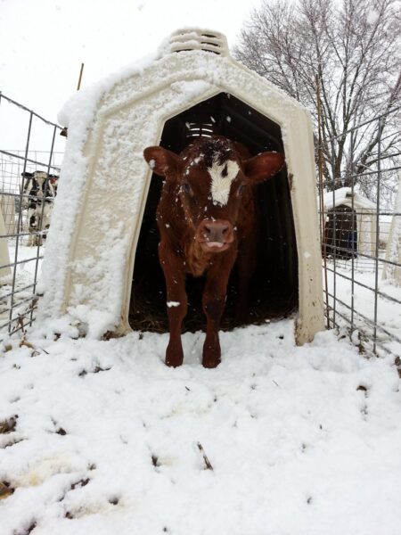 Veršelių energijos poreikis, kai jie laikomi nešildomuose nameliuose, žiemos mėnesiais padidėja dėl patiriamo šalčio streso.